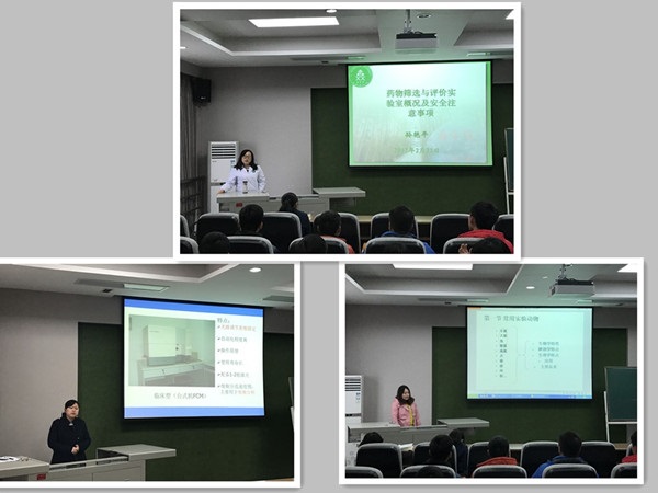 本次培训由药学院中药药理学教研室全体教师主讲,共分五个专题讲座和实验室实地操作演示与见习。孙艳平副教授做了实验室管理流程、安全准入制度、毕业实习带教与论文撰写方面的讲座;杨欣博士讲授常用实验动物(小鼠、大鼠、家兔等)习性、性别年龄的判断、在生物医学中的选择应用及实验动物的相关操作技术,包括分组与编号、给药途径与方法、常用的采血与麻醉方法等;王荣博士主要围绕免疫组化和流式细胞技术的原理及操作步骤、实验所需的各种仪器和对应的操作方法,并结合实例做了具体的讲解;郑蕾博士讲授了细胞培养的概念及相关技术,实验过程中涉及的各种仪器,操作方法,可以开展的实验及注意事项等内容。何昊博士主要围绕实时荧光定量PCR技术和western blot技术,对其实验原理、操作方法、注意事项进行了详细说明,并结合自己的研究经历进行了扩展。药学院药剂教研室翟西峰副教授同时为学生讲授药物研究所引进的药物筛选与模拟软件系统“SYBYL-X2.1分子模拟与药物设计”。