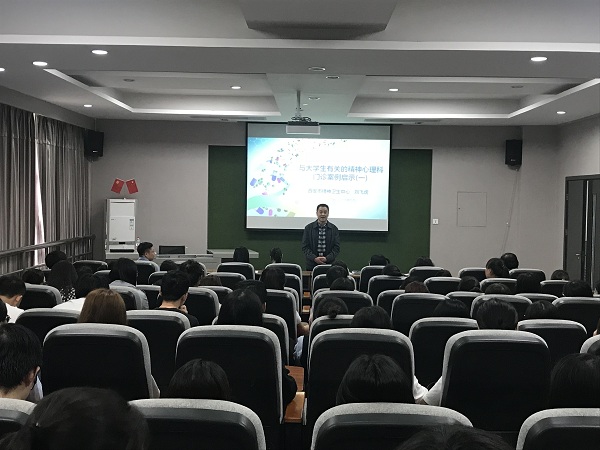 为进一步落实和加强药学院大学生心理健康教育,提升药学院辅导员工作的针对性和有效性,药学院邀请西安市精神卫生中心科教科科长刘飞虎于2019年5月16日下午在药学院报告厅作了题为“与大学生有关的精神心理科门诊案例启示”的讲座,讲座由药学院学生科科长杨欣雨主持,参与讲座的有药学院全体辅导员及学生代表。
