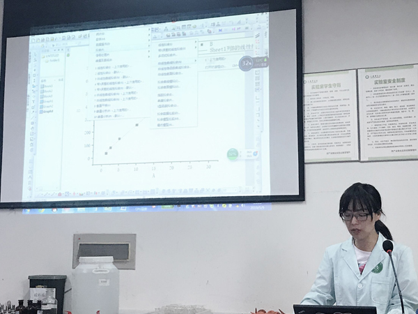 余丽丽教授结合教学经验和往届学生的数据处理分析实例,讲授了软件Origin 2018的基本操作,包括软件介绍、数据处理、图形绘制、数据拟合等方面的具体操作展示,指导学生如何将日常的数据处理中做成专业且美观的图表结果。