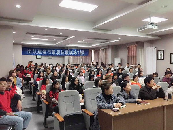 11月28日,市场营销专业《团队拓展培训》课程微改革成果汇报会在立德楼303学术报告厅举行,省级教学名师、校级教学督导张润岐教授,药学院副院长王黎,教学管理科科长任熙玲,市场营销专业负责人曹璞,教研室老师杨琳、陈草、辛志虹、权琳及市场营销专业2017级全体学生参加,曹璞老师主持汇报会。
