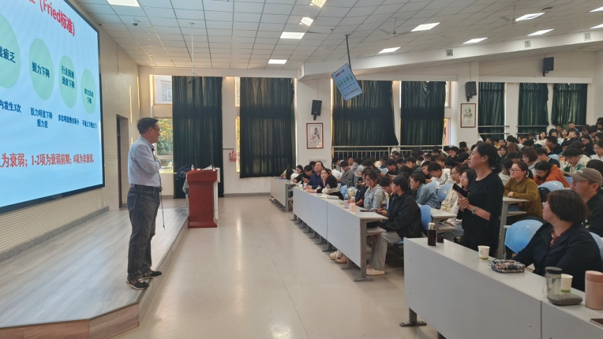 李玺教授以“老年衰弱与中医药防治”为题,深入分析了当前我国面临老龄化的新形势,为广大师生精彩讲授了老年衰弱防治的中医药策略与最新研究进展,并就《老年人衰弱预防中国专家共识(2022)》和老年衰弱的中医药防治的理论与师生展开探讨,现场气氛十分热烈。