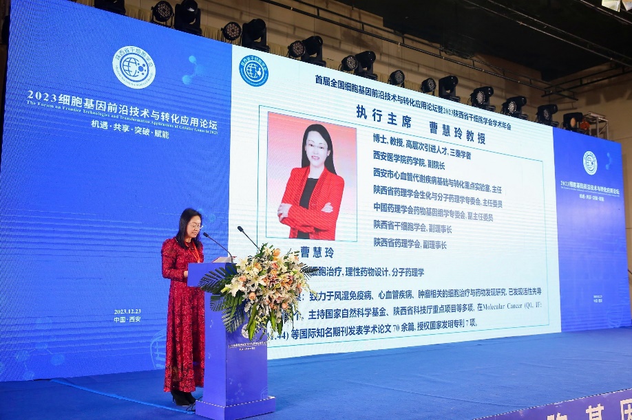 12月23日,由陕西省干细胞学会主办,陕西九州生物医药科技集团、西安医学院药学院和西安高新技术企业协会承办的“2023细胞基因前沿技术与转化应用论坛暨陕西省干细胞学会学术年会”在陕西宾馆隆重召开。陕西省干细胞学会副理事长、我校药学院副院长曹慧玲教授作为大会执行主席组织会议召开,会议采用线上与线下结合方式举行,省、市政府相关部门官员、陕西省干细胞学会理事与会员、省市医疗机构科研院所、西安多家高校等1000余人参加了现场与分会场会议,线上参会人数达5000余人。