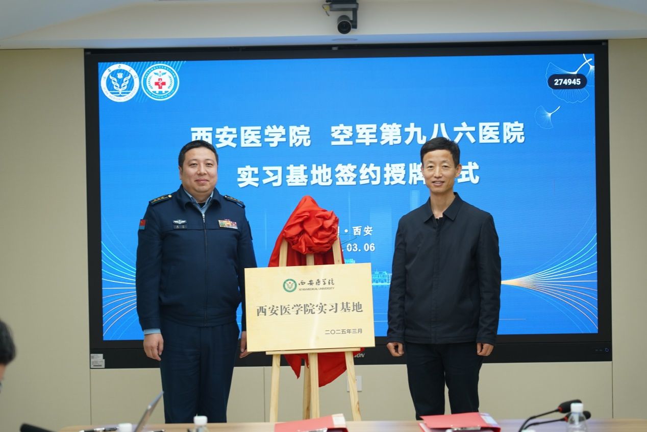 近日,校党委副书记杨卓虎带队赴空军第九八六医院举行本科生实习基地协议签约暨揭牌仪式。此次合作是我校在本科教育教学审核评估背景下,助力实践教学改革、提升实践教学质量的一项重要举措。