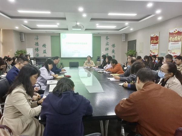 为了更好的强师德师风、促教风学风,健全分工会组织机构建设,10月7日上午,药学院在立德楼三层会议室召开了全体教职工大会。药学院党政领导、无课教职工参加了此次大会,会议由党总支副书记王黎主持。