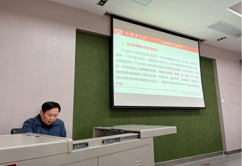 12月7日下午,药学院党总支、临床医学院党总支、卫生管理学院党总支、基础体育党总支在立德楼三层报告厅联合召开专题会议,校党委宣传部副部长刘军林作了关于党的十九届六中全会精神宣讲报告,各党总支党员师生代表参加会议。会议由药学院党总支书记王黎主持。
